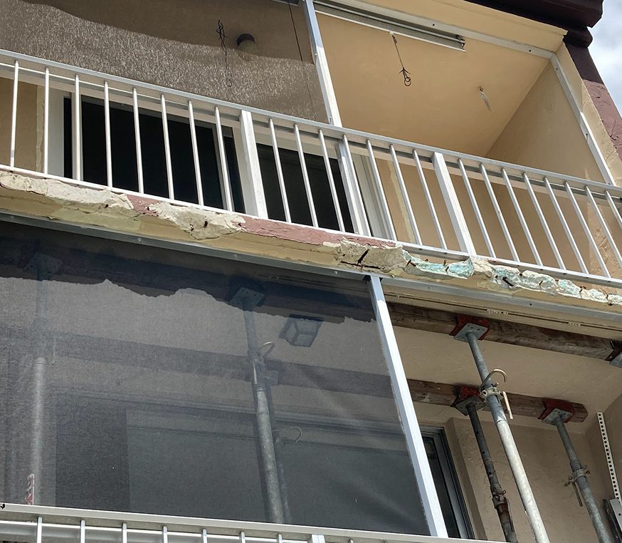 Concrete restoration of multiple buildings involving numerous balconies, exterior cracks and waterproofing, stucco repairs, new overlay throughout all buildings, and catwalks maintenance and new overlay installation.