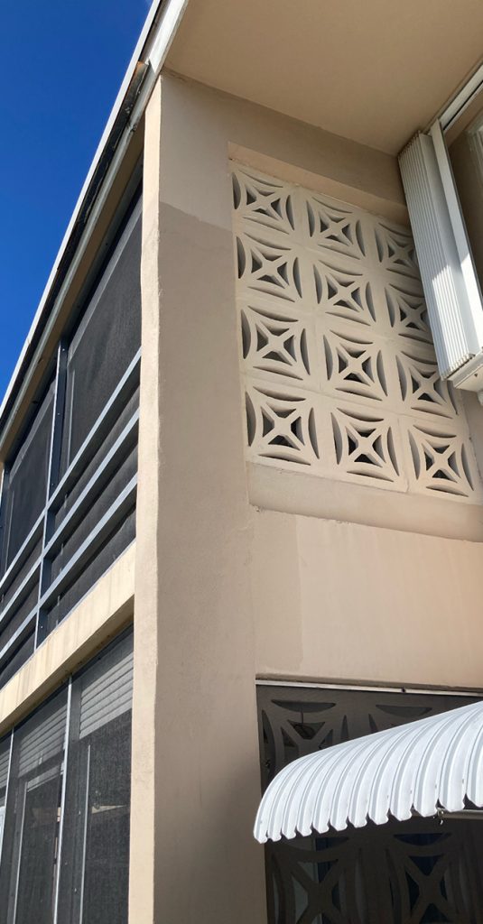 Restoration project for a 2-story condominium involving removal of damaged concreted, treatment of corroded rebar, and restoration of structural elements including stairs, catwalks terraces, and balconies. Guardrails on public stairs and catwalks were also replaced.