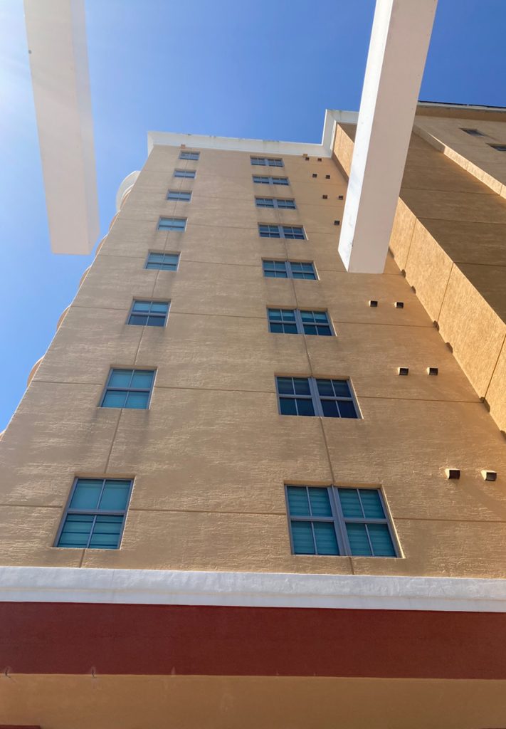 Concrete restoration of multiple buildings involving numerous balconies, exterior cracks and waterproofing, stucco repairs, new overlay throughout all buildings, and catwalks maintenance and new overlay installation.